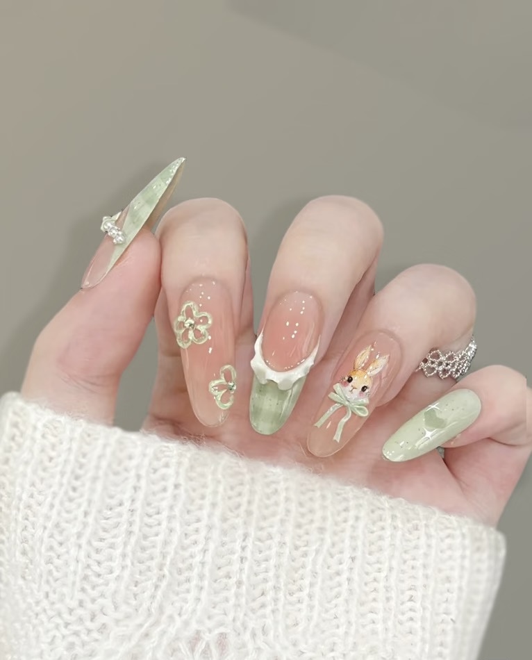 Spring days, Easter looks, picnic aesthetics, cottagecore lovers, or those who adore gentle and cute nail art.